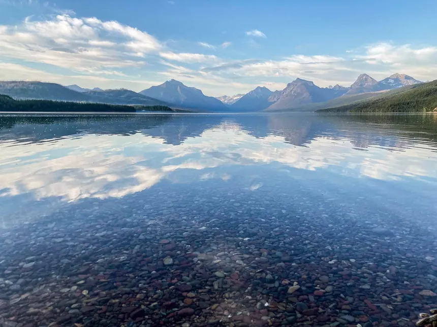 - Observe the gleaming whiteness of the glacier, this looks like falling down into the lake.